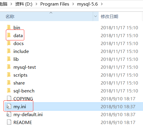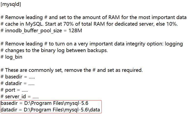 datadir = D:\Program Files\mysql-5.6\data(mysql所在目录\data)