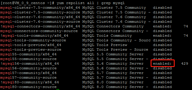 再使用 yum repolist all | grep mysql 命令查看子存储库情况
