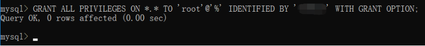 mysql>GRANT ALL PRIVILEGES ON *.* TO 'your username'@'%' IDENTIFIED BY 'your password' WITH GRANT OPTION;