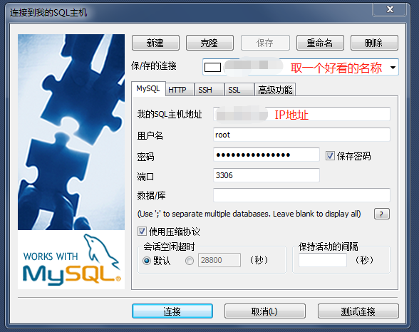 your username 和 your password 改成 mysql 数据库的用户和密码