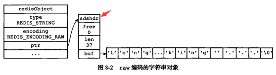 127.0.0.1:6379> set story3 "long long long long long long long long long ..." OK 127.0.0.1:6379> strlen story3 (integer) 48 127.0.0.1:6379> object encoding story3 "raw"