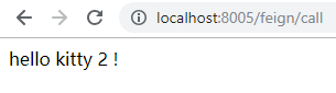 启动成功之后,多次访问 http://localhost:8005/feign/call,结果如同之前一样交替返回 hello kitty 和 hello kitty 2。