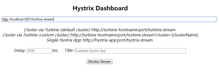 访问 http://localhost:8501/hystrix,会看到如下图所示界面。