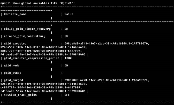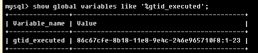2、在报错的slave上执行show global variables like '%gtid%';并将gtid_executed记录下来