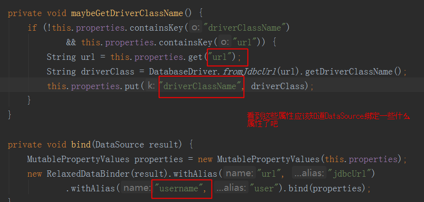 可以点开看看maybeGetDrivaerClassName()方法和bind()方法