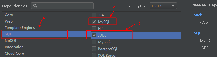 1.新建一个springboot项目(web+mysql+jdbc+1.5xx版本)