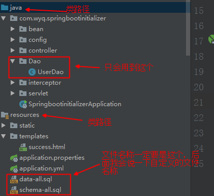 之后的目录是这样的(注意:sql文件名称默认是有要求的;schema-all.sql是建表语句,data-all.是插入初识数据的语句)