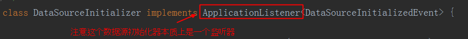 所以初始化器就是拿到ioc容器和我们配置的数据源信息,要去做点什么事,点进去看看(还记得监听器的原理吧,只要ioc容器发布事件,就会触发事件派发器去遍历所有的监听器,执行监听器里面的onApplicationEvent方法,我在spring ioc源码那里说了的)