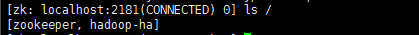 (5)进入Zookeeper命令行查看目录,可以看到多了一个hadoop-ha,说明配置正确