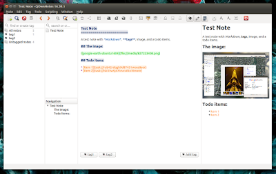 鉴于 QOwnNotes 有这么多优点,它支持 Markdown 语言(内置了 Markdown 预览模式),可以标记笔记,对标记和笔记进行搜索,在笔记中加入超链接,也可以插入图片: