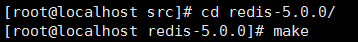 4.由于redis下载下来的压缩包内部是c语言的源代码形式,必须先经过编译,因此进入源文件目录先执行make操作(系统必须有gcc之类的c语言编译器哦)
