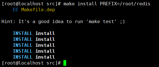 5.在src目录下执行make install命令,以目标文件为基础,进一步生成可执行文件,其中 PREFIX选项用于指定可执行文件的安装路径