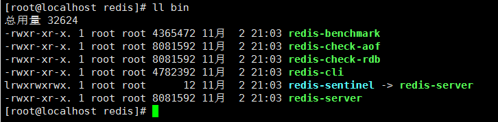 6.可以看到,在指定的可执行文件安装路径下,已经出现了bin文件夹,其中包含了redis的可执行文件