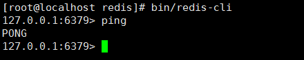 8.再打开一个新的ssh连接,通过redis客户端来访问redis服务,默认情况下,客户端会请求6379端口。输入ping,返回pong,说明redis服务工作正常
