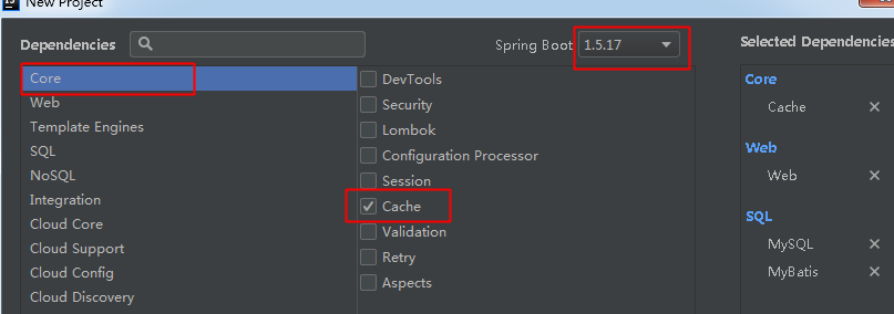 导入如下的几个场景cache+web+mysql+mybatis+版本1.5xx