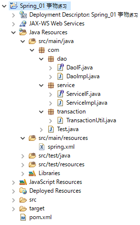 1 public class Test {2 public static void main(String[] args) {3 ClassPathXmlApplicationContext classPathXmlApplicationContext = new ClassPathXmlApplicationContext(4 "spring.xml");5 ServiceIF service = (ServiceIF) classPathXmlApplicationContext.getBean("serviceImpl");6 service.add("小王", 23);7 }8 }TransactionUtil.java