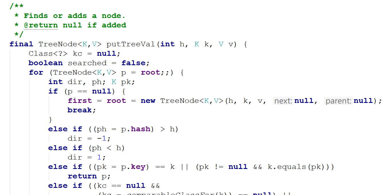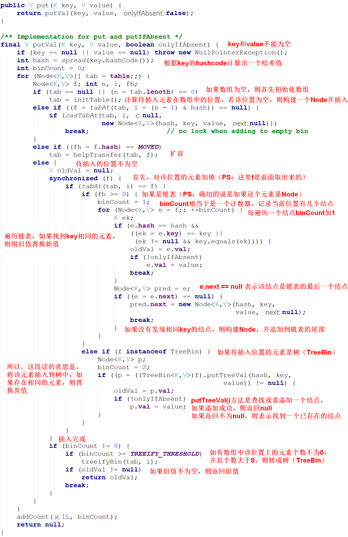 如果是TreeBin,则遍历树,若发现相同key的节点,则用新值替换旧值,否则构造TreeNode,并将其插入到树中