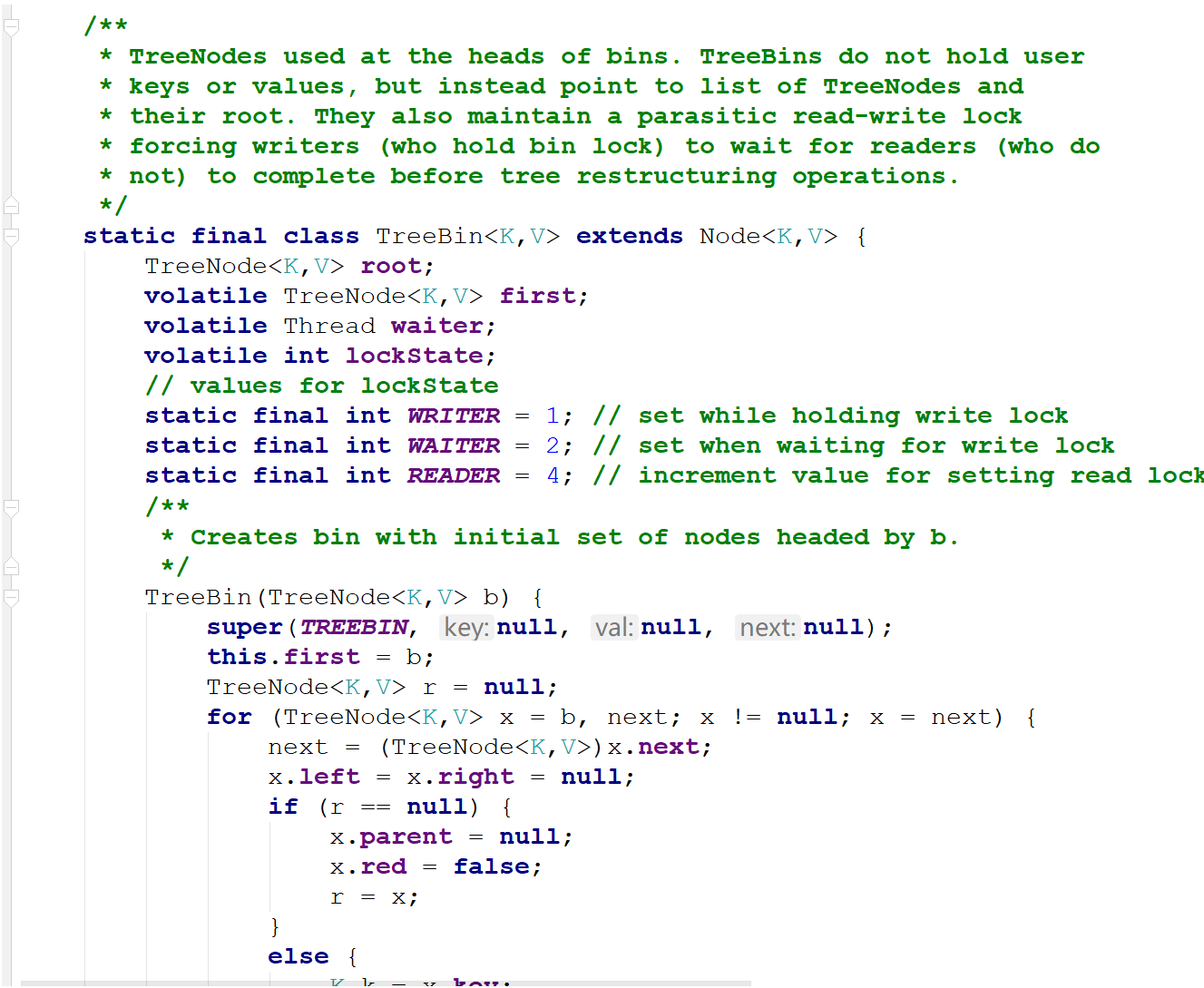 也就是说,Node表示链表中的节点,TreeNode表示树中的节点,TreeBin表示树