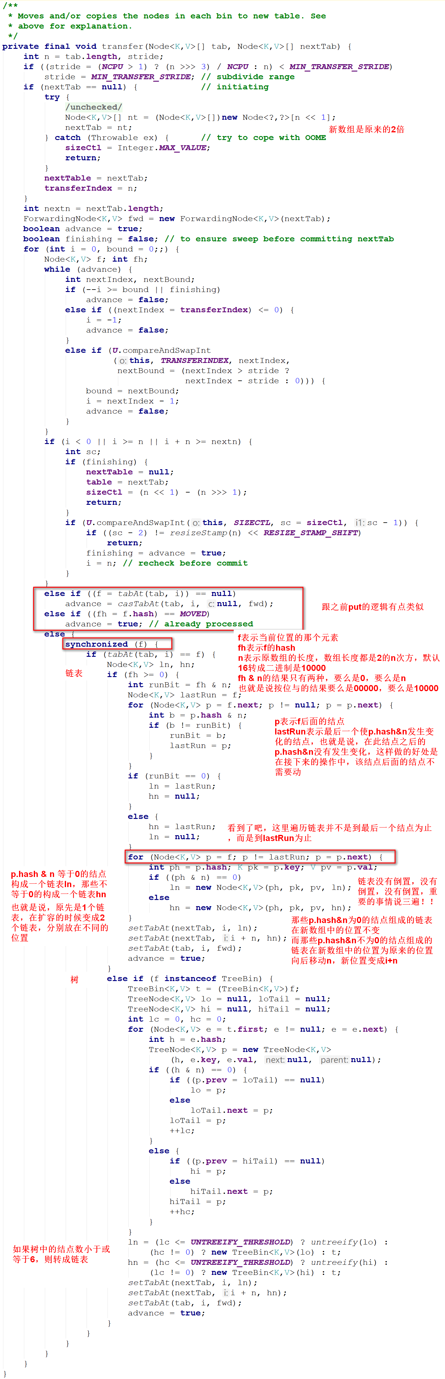 不管原来是链表结构还是树型结构,扩容以后都变成两部分,一部分是hash&n为0的,另一部分是hash&n不为0的,其中n为原数组的长度