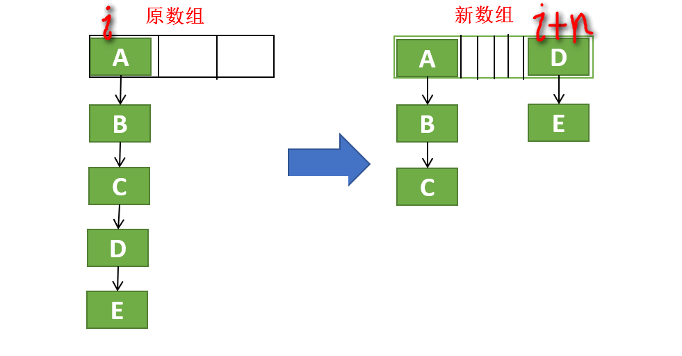 对于那些hash&n != 0的节点,它们在新数组中的位置相比于之前在旧数组中的位置是向后移动了n