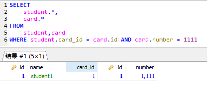 String name; int card_id; /* getter and setter */}最终我们执行查询(上述的 SQL 语句)的结果如下: