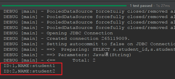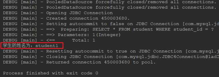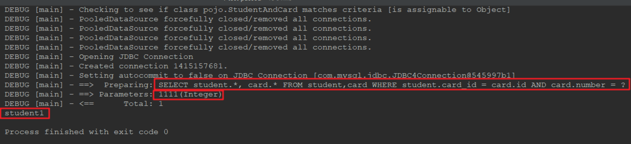 StudentWithCard student = session.selectOne("findStudentByCard", 1111); // 获得其姓名并输出