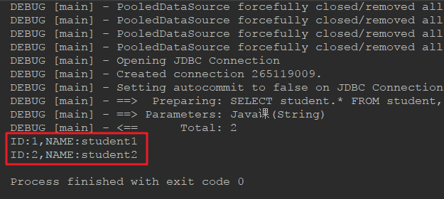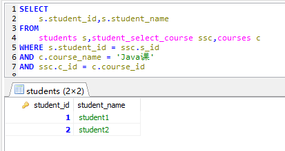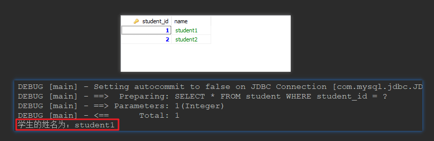 student, classWHERE student.student_id = class.student_id AND class.class_id = #{value}我们执行的结果如下: