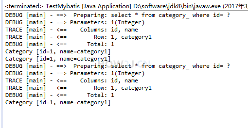 }这一次,另外打开一个 session , 取同样 id 的数据,就会发现需要执行 sql 语句,证实了一级缓存是在 session 里的: