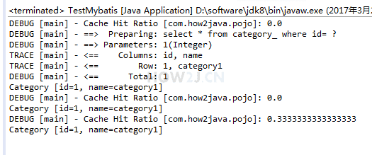 我们在同一个 SessionFactory 下查询 id = 1 的数据,只有第一次需要执行 SQL 语句,从后都是从缓存中取出来的: