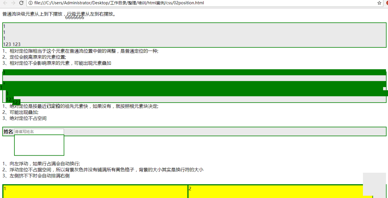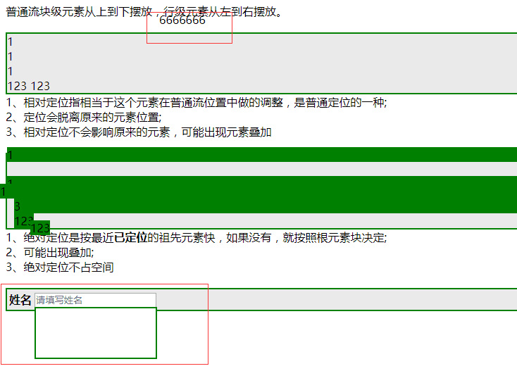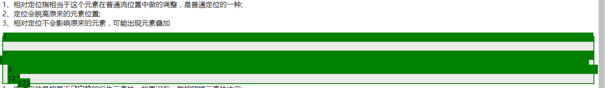 比如相对定位使得本在第二行的元素div上浮了一行的高度,则他会和本来在第一行的元素叠加,但是他在第二行的位置还是会空在那里,下一个块级元素会从第三行开始布局。代码和效果如图