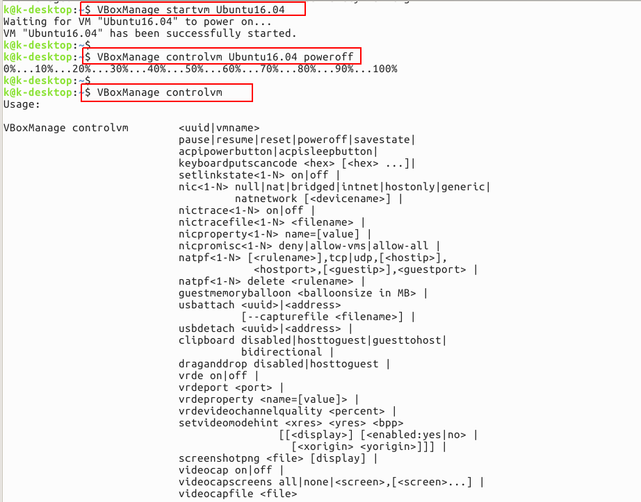 $ VBoxManage controlvm Ubuntu16.04 poweroff