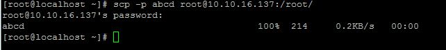 [root@localhost ~]# scp -P 2222 abcd1 [email protected]:/root/