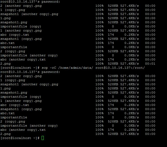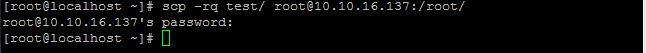 [root@localhost ~]# scp [email protected]:/root/importantfile /home/admin/The authenticity of host '10.10.16.137 (10.10.16.137)' can't be established.RSA key fingerprint is b0:b0:a3:c3:2e:94:13:0c:29:2e:ba:0b:d3:d6:12:8f. Are you sure you want to continue connecting (yes/no)? yes Warning: Permanently added '10.10.16.137' (RSA) to the list of known [email protected]'s password:importantfile 100% 0 0.0KB/s 00:00[root@localhost ~]#