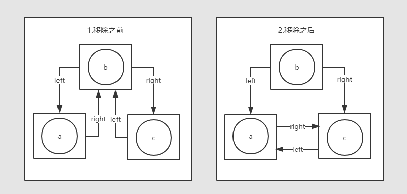 this.left.right = this.right; //:::令当前链表的 右节点和左节点建立关联