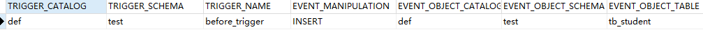 select * from information_schema.triggers where trigger_name = 'before_trigger' ;