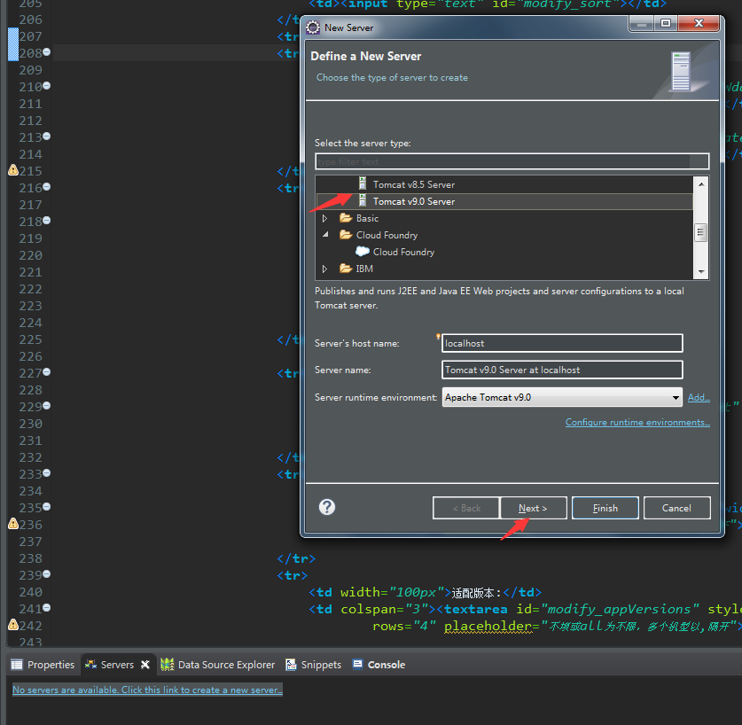 如果你这里显示的是上图所示,没有可用的服务,需要点击添加新的服务。如果有服务,但是不是你所需要的tomcat服务,则需要将它删除。