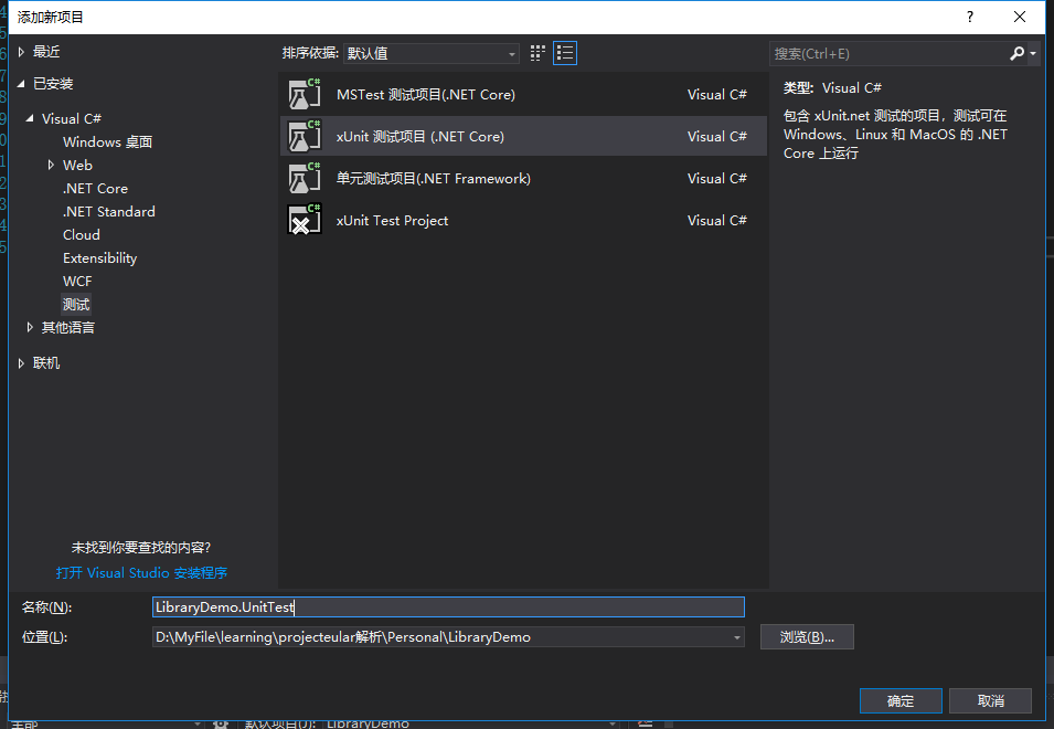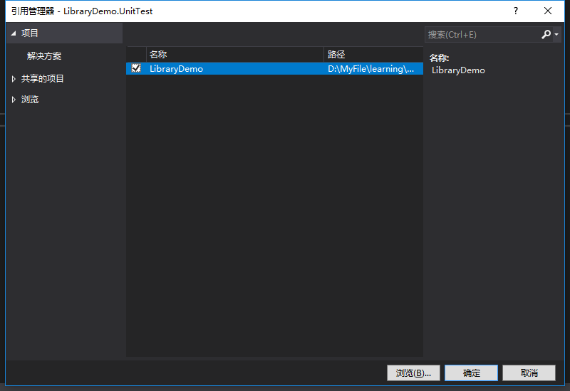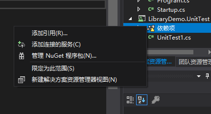 创建一个单元测试项目并引用 LibraryDemo 为以后的单元测试做准备。