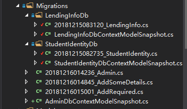 运行 add-migration 命令会创建 Migrations 文件夹以及相应的迁移快照,此处的 AddSomeDetails 和 AddRequired 为后来我自己添加的内容: