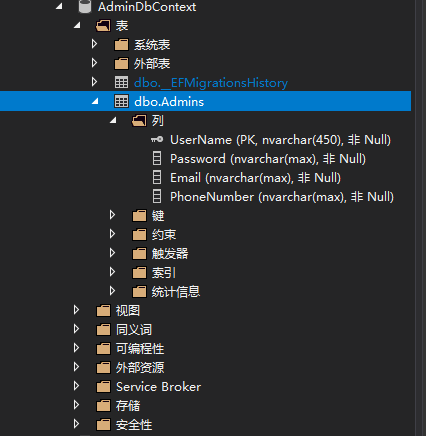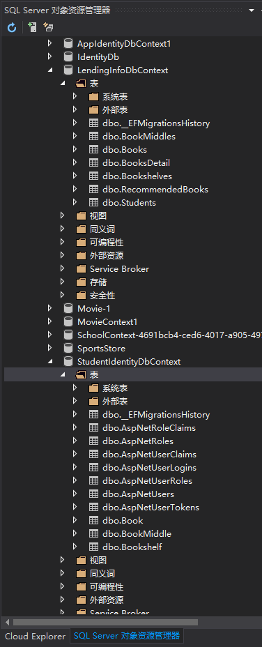 最后在 SQL server对象管理器 中可以看见创建的数据库以及对应的表: