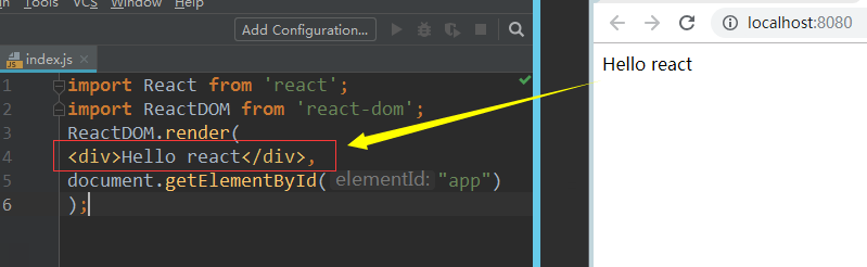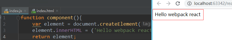 如果在浏览器中看到了Hello react 这段文字,说明我们的配置是成功的。如下: