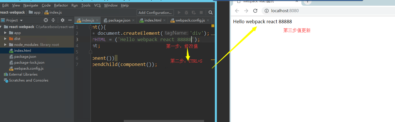 webpack通过上边的步骤,基本已经配置完成了,这里我们写一个React文件来进行测试一下。