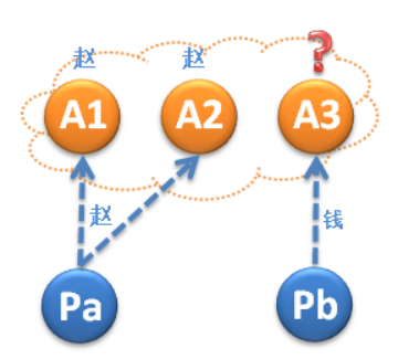 首先看一下下面这种最简单的情况:A1接受了Pa的议案“赵”,A2和A3接受了Pb的议案“钱”,那么最终小绿应该姓什么?