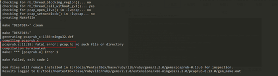 gem install bundler命令成功安装bundler,但是bundle instal –-gemfile命令,在安装到pcaprub时报错,提示找不到pcap.h,