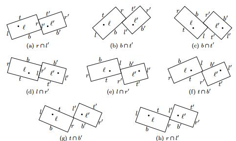 有八个可能的角度会使得一对水平标签发生碰撞。这些可能碰撞的每一个都用一些三角学检验来检验。