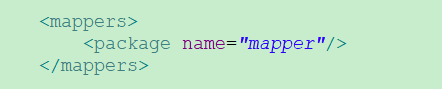 注意看有个小细节,接口文件和 mapper 文件在同一目录下,且同名。为什么要这么做呢 ?因为在主配置文件中关联 mapper 文件的时候,若是使用如下图方式,就需要 mapper 文件和接口名称相同且在同一目录下。Mybatis 直接对包进行扫描,不用一个一个的配置 mapper 文件。