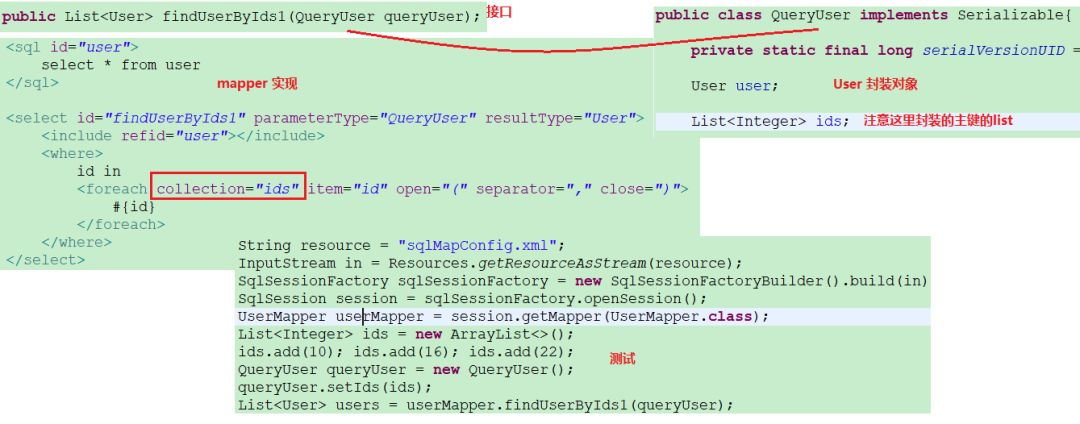 这里可以看到 foreach 中的 collection 是对象中的属性 ids ,我们再来看看其它的实现方式。