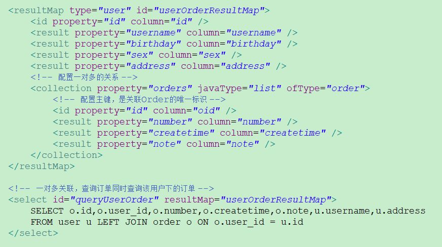 而在一对多的关系中,我们可以使用 collection 标签进行表示,如下图所示