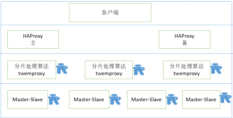 以下是keepalived+twemproxy+HAProxy+sentinel的整个架构图(小人是指哨兵)