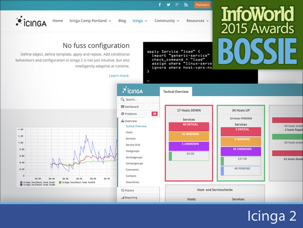 Icinga 起先只是系统监控应用 Nagios 的一个衍生分支。Icinga 2 经历了完全的重写,为用户带来了时尚的界面、对多数据库的支持,以及一个集成了众多扩展的 API。凭借着开箱即用的负载均衡、通知和配置文件,Icinga 2 缩短了在复杂环境下安装的时间。Icinga 2 原生支持 Graphite(系统监控应用),轻松为管理员呈现实时性能图表。不过真的让 Icinga 今年重新火起来的原因是 Icinga Web 2 的发布,那是一个支持可拖放定制的 仪表盘 和一些流式监控工具的前端图形界面系统。