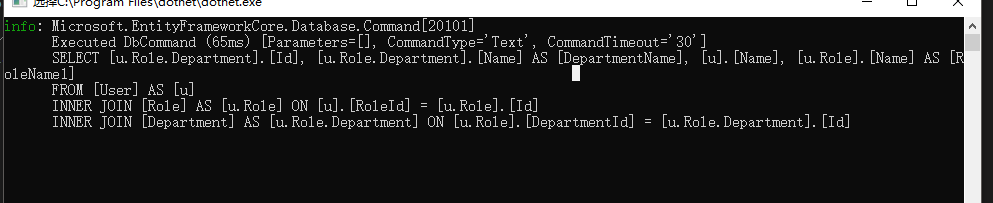 实体中的 DepartmentName 由于通过用户表关联角色表,再通过角色表关联 部门表得到故 需要通过特性标注
